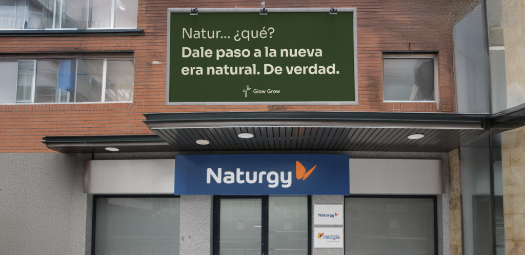 - Publicidad exterior: Lona en edificios de empresas eléctricas con el mensaje: “Natur… ¿qué? Dale paso a la nueva era natural”.